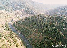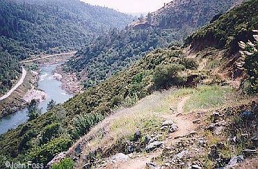 This is another picture of the Auburn River Gorge. This picture was taken off of Foothill bridge, a 750 foot tall bridge that spans the gorge. Plans are under way to dam the river upstream from this point, to make everything you see here a reservoir. Let's hope that doesn't happen, you'll have to swim a lot to get to those mountain unicycle trails! |