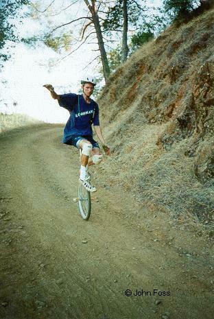 Mountain Gliding? You bet. This is on Stagecoach Trail in Sacramento during the '97 Muni Weekend. You need a nobby tire to do this because the dirt makes the tire really slick. You have have to press like crazy to get any resistance. Yip-eee that was fun!