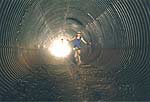 Trail The Clementine Loop, which the experts rode on Saturday morning, is actually made up of several smaller trails. The middle section is called the Culvert Trail, because it passes underneath Foresthill Road through this culvert, built specially for the trail. When riding in there from the bright sun, it's absolutely pitch black in there! Scott Arnold from Springfield, Oregon is feeling his way along toward the exit. |