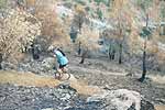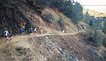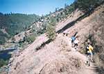 Peck leads the way At one of the highest points along the trail, Christopher Peck leads dad George Peck and others through a nasty eroded section of the trail. Like father like son. |
