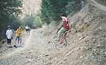 Bundy on the steep part The very last part of the race course is very steep; so steep that we didn't even use it the first year. It also changes year to year due to the forces of erosion, not to mention being flooded by high water during the winters. Bruce Bundy of Santa Cruz is making a maximum effort to get to the top the fastest! |