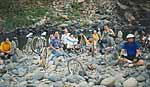 Mom, here we are under the big bridge again! More than 60 people gathered at the confluence for this years' rides. We tried a different spot for the picture, down at (and in) the river. But we kept the big Foresthill Bridge as our backdrop. |